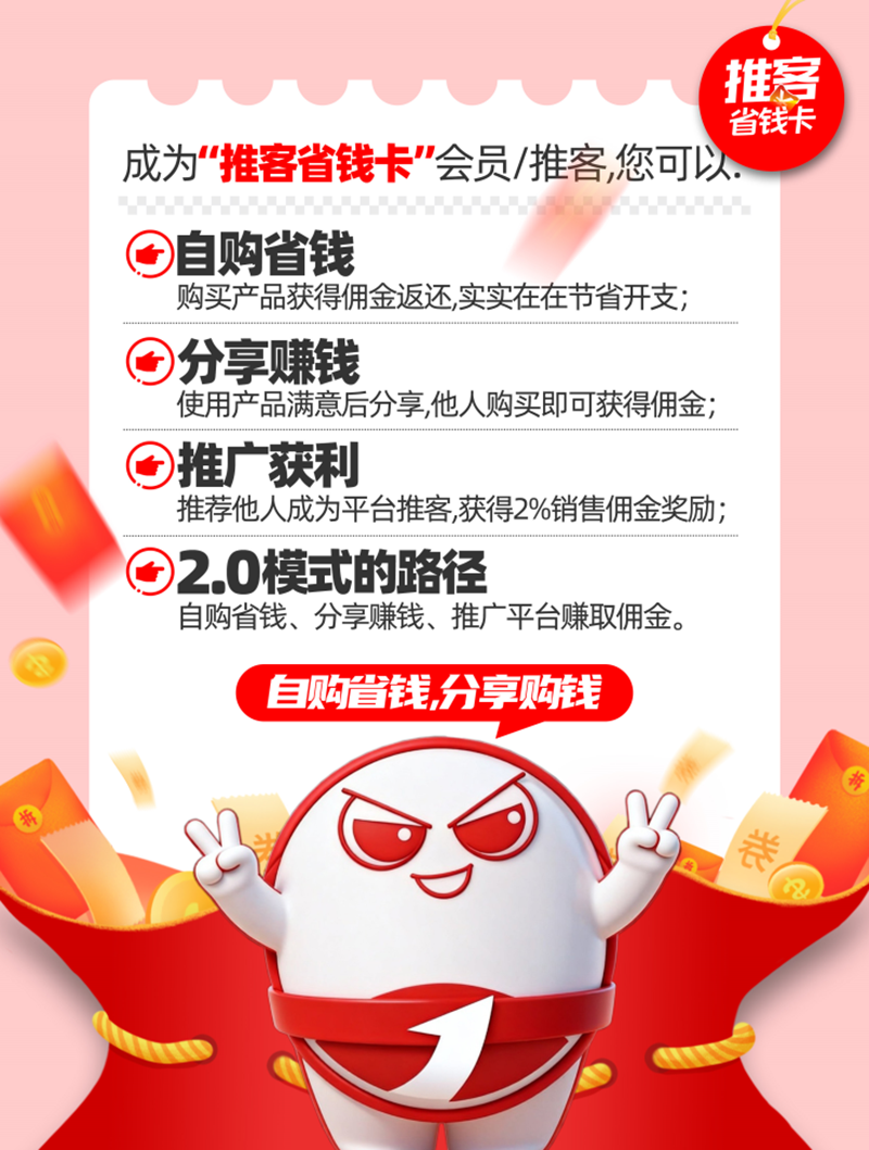 傳統(tǒng)的推客模式往往依賴于推廣者的社交關(guān)系鏈進(jìn)行單向信息轟炸,而忽略了消費(fèi)行為本身的價(jià)值。推客省錢(qián)卡2.0模式對(duì)此進(jìn)行了根本性重構(gòu)。它借鑒并升級(jí)了“自購(gòu)省錢(qián)”的成功玩法,將商業(yè)邏輯的起點(diǎn)牢牢錨定在“用戶體驗(yàn)”之上。